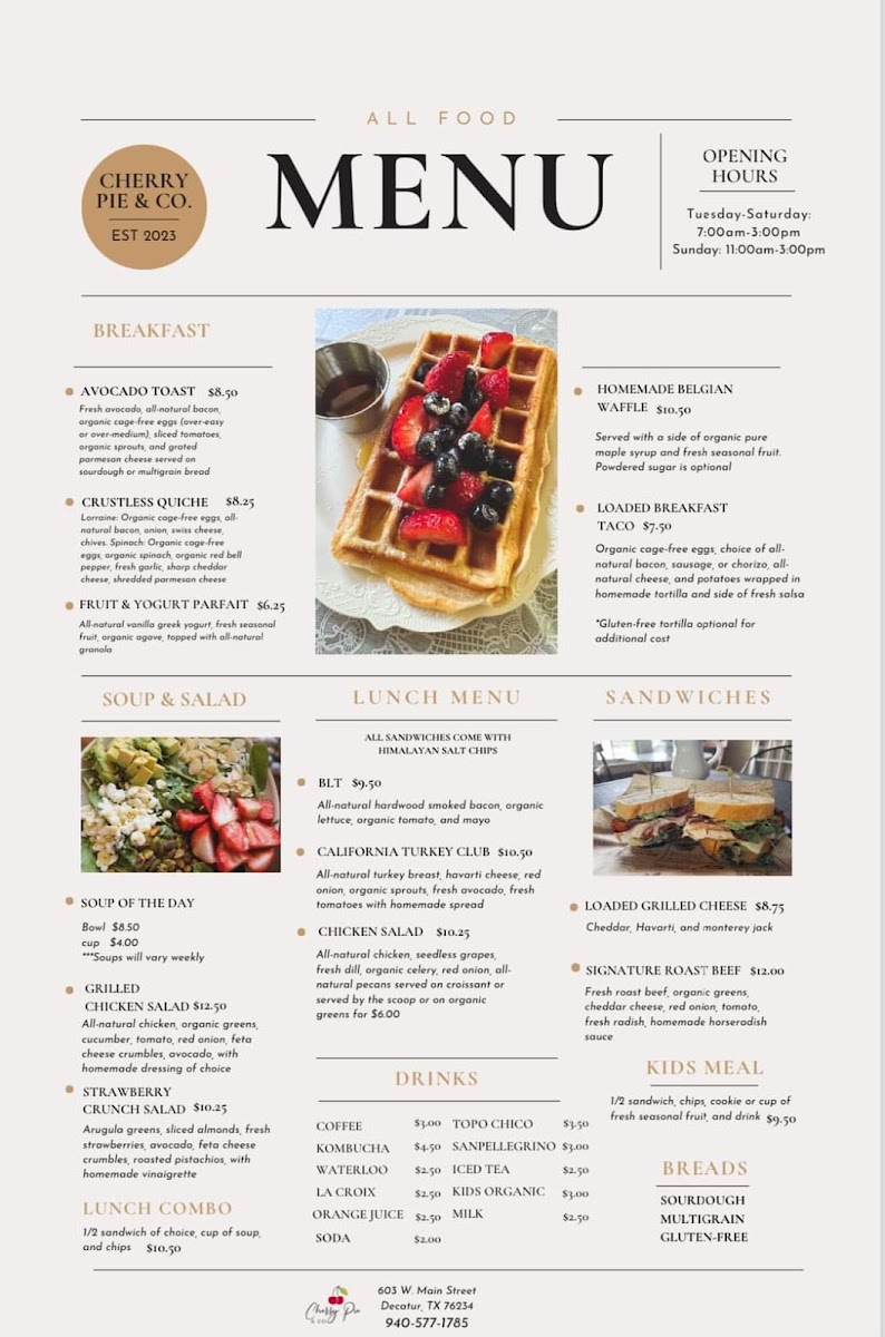 Welcome to Cherry Pie & Co., a delightful cafe nestled in the heart of Decatur, Texas, at 603 W Main St. This charming eatery is not just a place to grab a bite but a cozy haven where you can experience genuine warmth and culinary excellence, all while being treated like family.